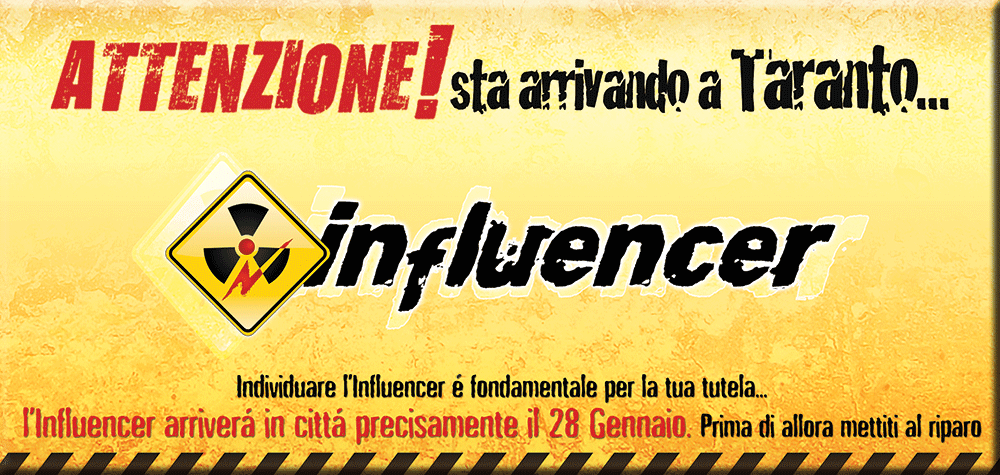 Abbiamo creato una suspense in tutta la città di Taranto per 20 giorni, dal 08 gennaio al 28 gennaio. In questi venti giorni abbiamo "attaccato" la città con il tormentone "Attenzione sta arrivando l'influencer".
